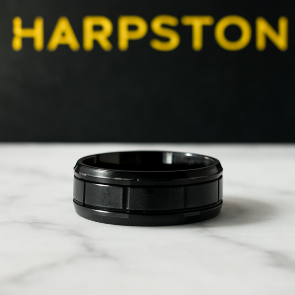 Claude black features a deep black titanium finish and streamlined groove detailing, this ring embodies modern sophistication. Lightweight and built for comfort, it pairs durability with a polished masculine look.