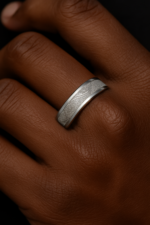 Etienne male band is an elegant titanium ring showcases a matte, sandblasted center with artistic wave engravings for added depth. Smooth polished borders frame the design, giving it a luxurious and timeless appeal. Made for comfort, durability, and everyday refinement.