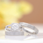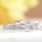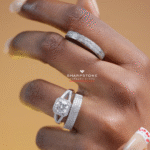 Quinn – Gemma Moissanite Bridal Set with Crisp Titanium Male Band