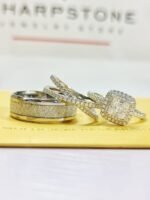 Quinn – Gemma Moissanite Bridal Set with Crisp Titanium Male Band